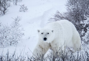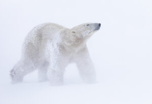Winter arrived on the tundra today, with steady winds, drifting snow and a windchill near –13°F. The landscape felt alive and untamed—snowflakes sweeping sideways through the air, the horizon fading softly into white and bears appearing like pale spirits emerging from the snowy haze. As we explored, the day filled with the quiet magic and visual wonder of the Arctic.