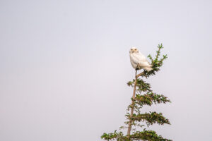 By Gordon Point a female with her two yearlings rested along the ridge. Four solo bears were spread out nearby, most of them curled up and sleeping. Perched out on the point, a snowy owl offered a bright contrast to the muted tundra.